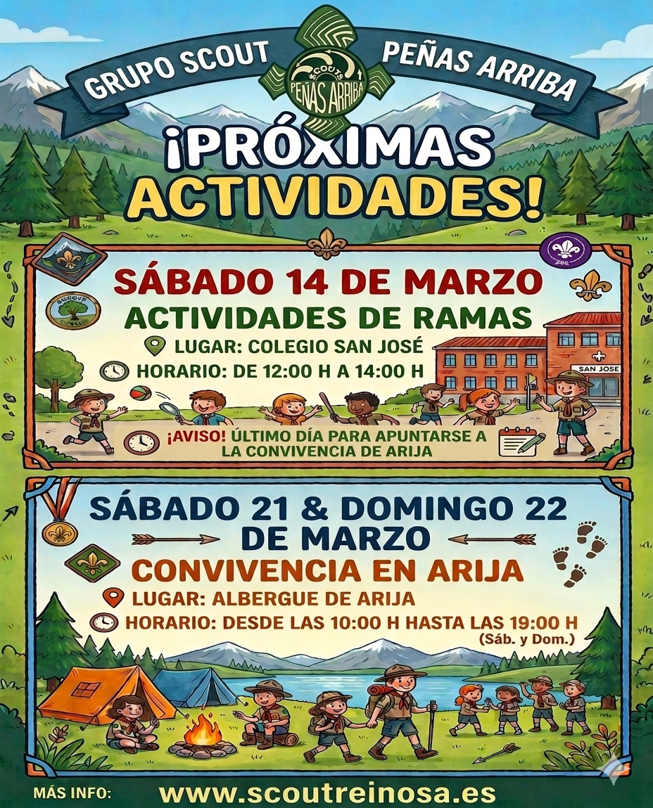 El grupo Scout PEÑAS ARRIBA es una asociación juvenil sin ánimo de lucro, que trabaja con chicos y chicas entre los ocho y los dieciocho años en la metodología del Movimiento Scout.